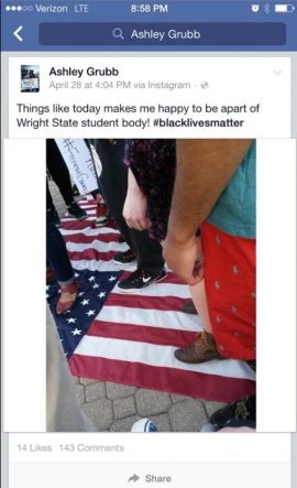 Hating America runs high at Wright State University in Dayton Ohio, as this is now the second student of this anti American University we have caught doing this.   Ashley Grubb did try to cover her tracks and remove all evidence of this on the internet after she obviously received massive backlash, the only problem is, the internet has archives and “cache” in which incidents like these live forever.