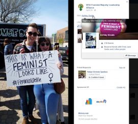 Well one big mistake Ashley made was not changing her default profile picture, that was the ONLY way we could make a positive match. Look at the profile picture in the above photo, here is the current profile picture. Ashley is the girl on the right, as tagged by her feminist movement. Thanks for turning one of your own in feminists 🙂