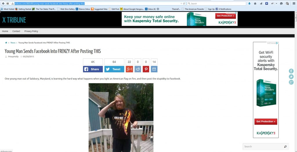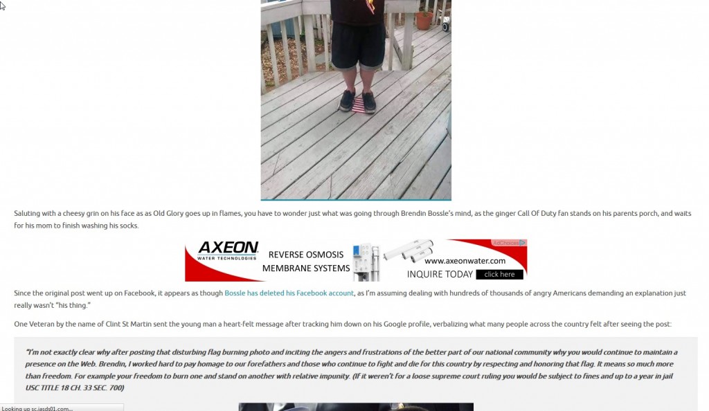 Brendin Bossle for whatever reason decided to take a picture of himself in a call of duty shit with a cheesy grin on his face while holding a burning American Flag.   Within a few hours his home phone number was disconnected and his facebook account was closed.  Now that most of the backlash is over, we have finally posted his profile.