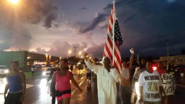 Ferguson #blacklivesmatter protesters have recently been caught on video desecrating a US flag in front of a soldier while screaming racial slurs.