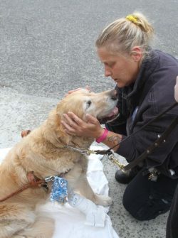 Figo stayed with his owner as the first responders arrived to the scene.  Even while injured, Figo would not leave her side. Eventually they had to be separated when Audrey Stone (owner) had to be taken to the hospital while Figo had to be taken to the veterinaries to get fixed up.