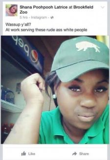Shana Latrice was recently fired from the Brookfield zoo for something very similar. She posted on her instagram “At work serving these rude ass white people” and was terminated from her position shortly after. I didn’t come out and call Hyley racist and I’m not going to call Shana racist either. I think both people made stupid mistakes and said something they shouldn’t of and paid a heavy price for it. I believe that we often say things we regret when we’re angry, frustrated, or possibly caught up in the great debate.