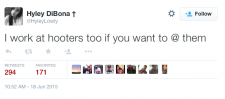 It appears that Hyley Dibona was terminated by Regal Cinemas for controversial tweets she made on June 18th 2015. Haley made the following 3 tweets: