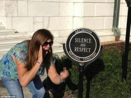 In 2012 Lindsey Stone took the following disrespectful picture at the Arlington Cemetery: